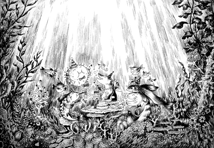 Här finner du bilder framtagna med olika tekniker, såväl akvarell som svart fineliner.
